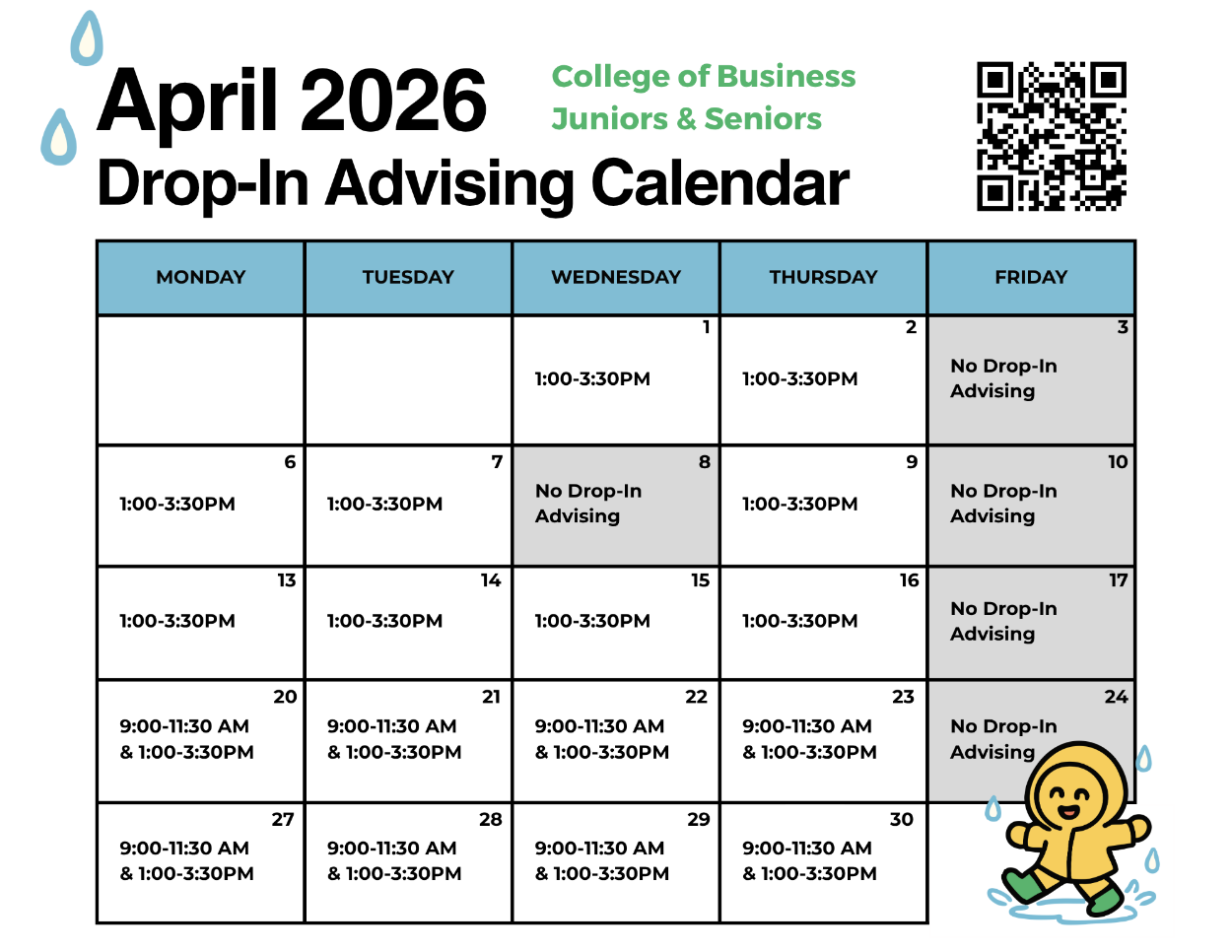 - We do not have drop-in advising on Fridays.