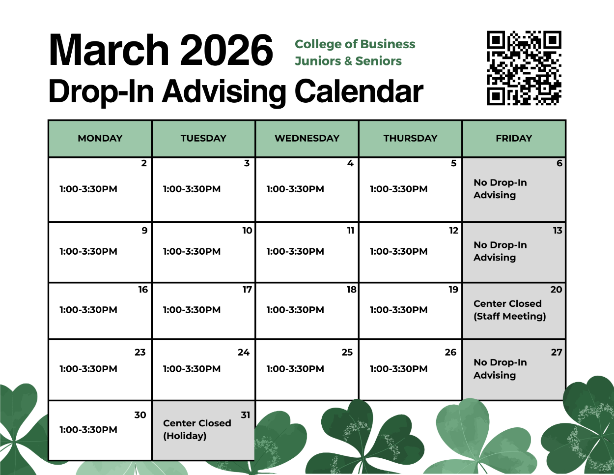 *Students interested in changing their major to Business or adding the Business minor must attend drop-in advising (Service #2).